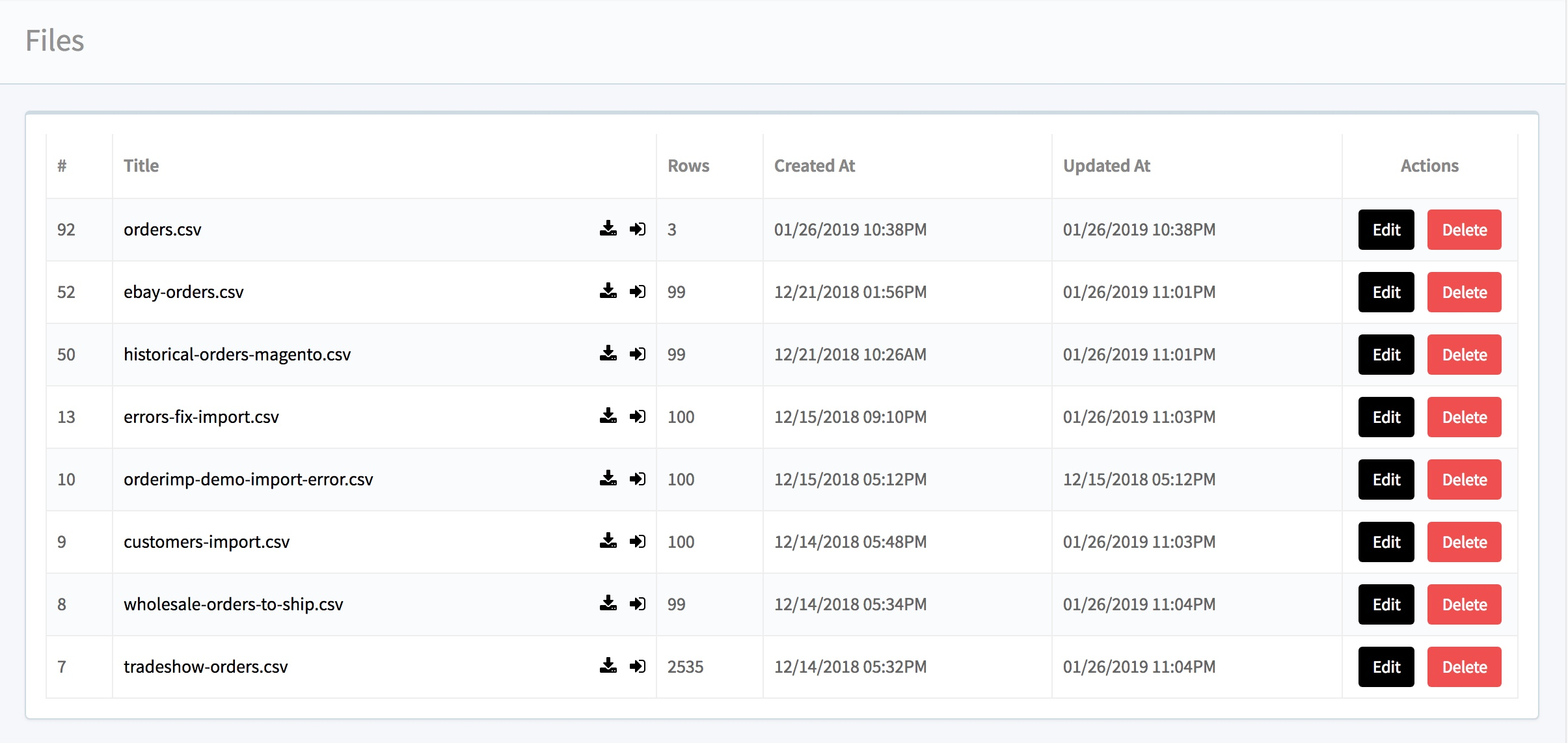 This shows a list of all files that you have uploaded into your Orderimp account.